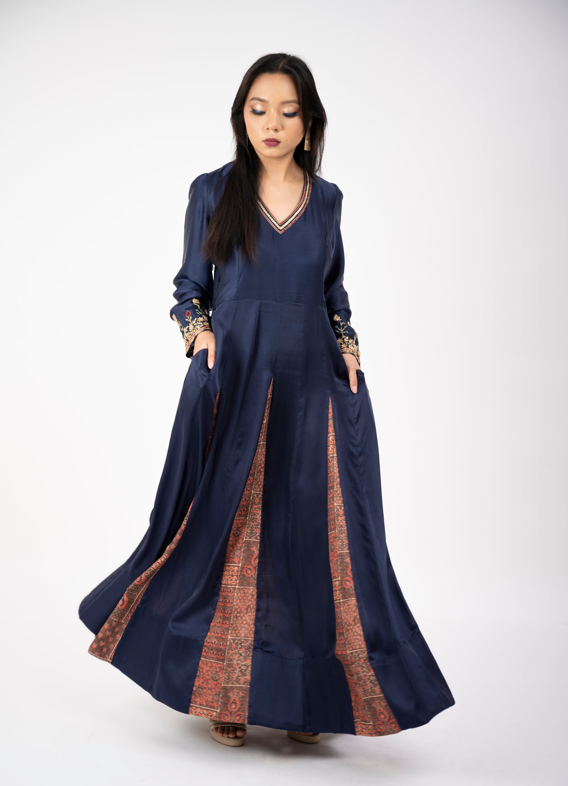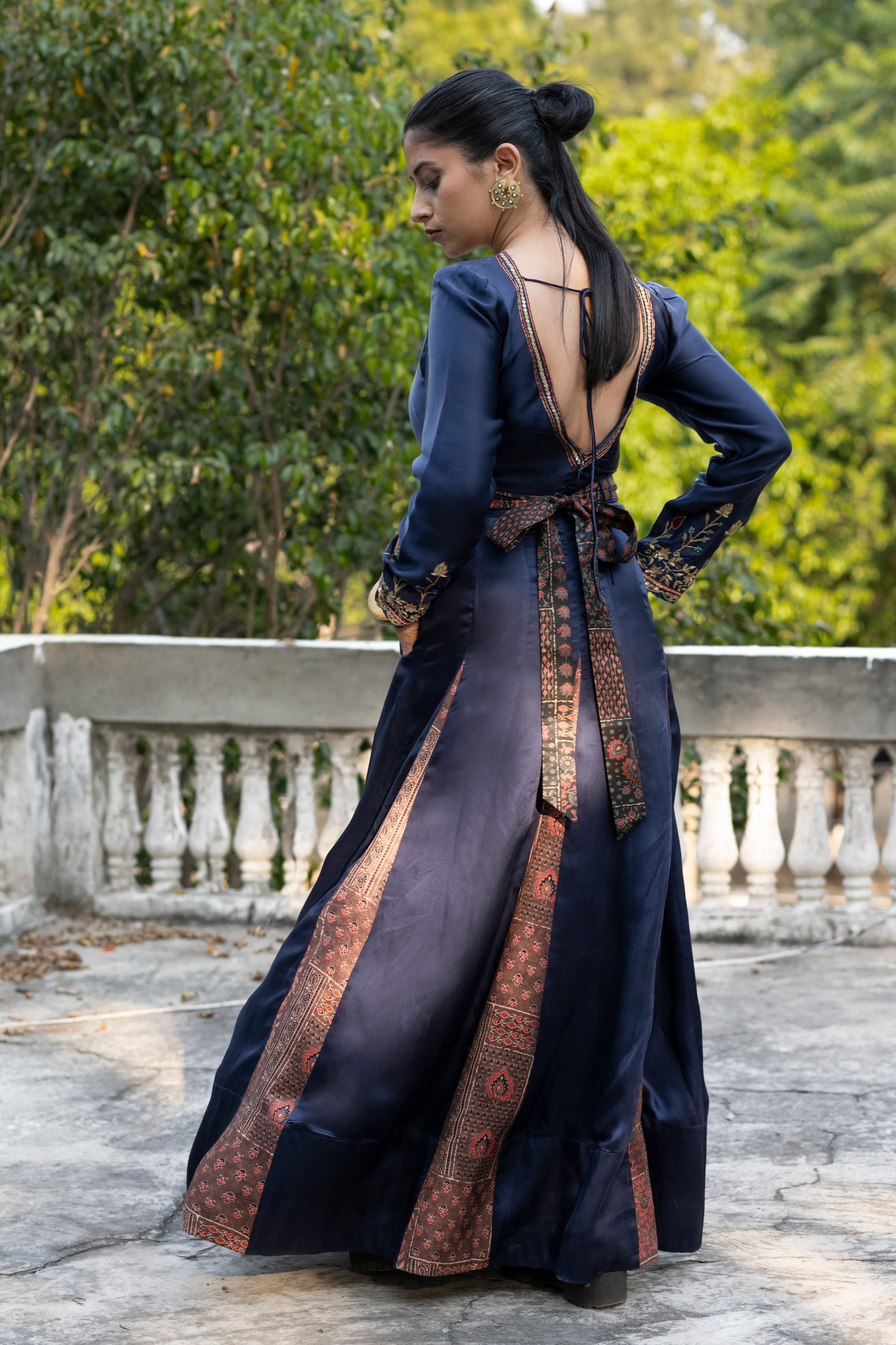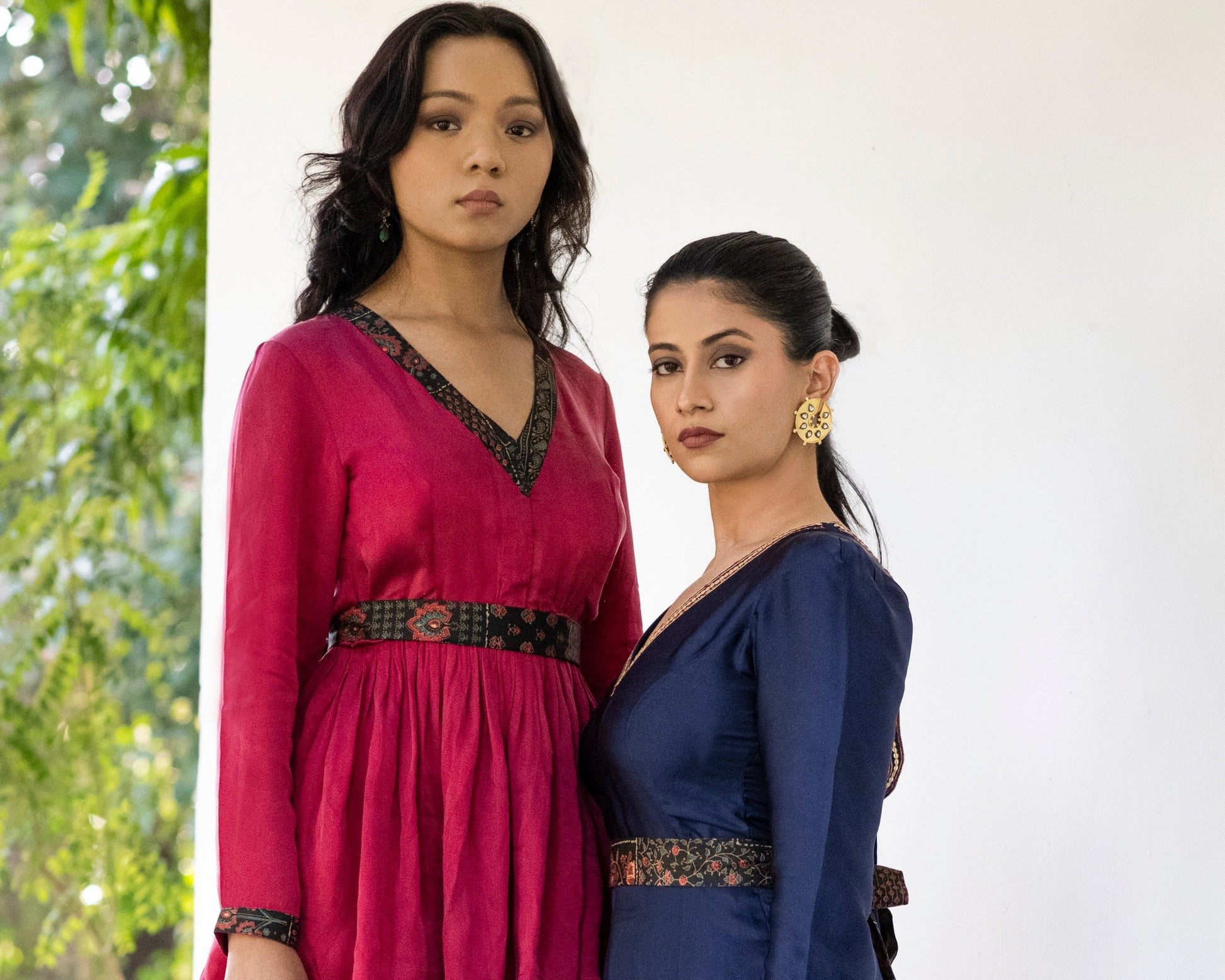 Discover the elegance of the Neerja Gown, meticulously crafted from luxurious cupro and gaji silk. This flowing gown combines timeless style with a contemporary edge, designed to make you feel graceful and empowered.