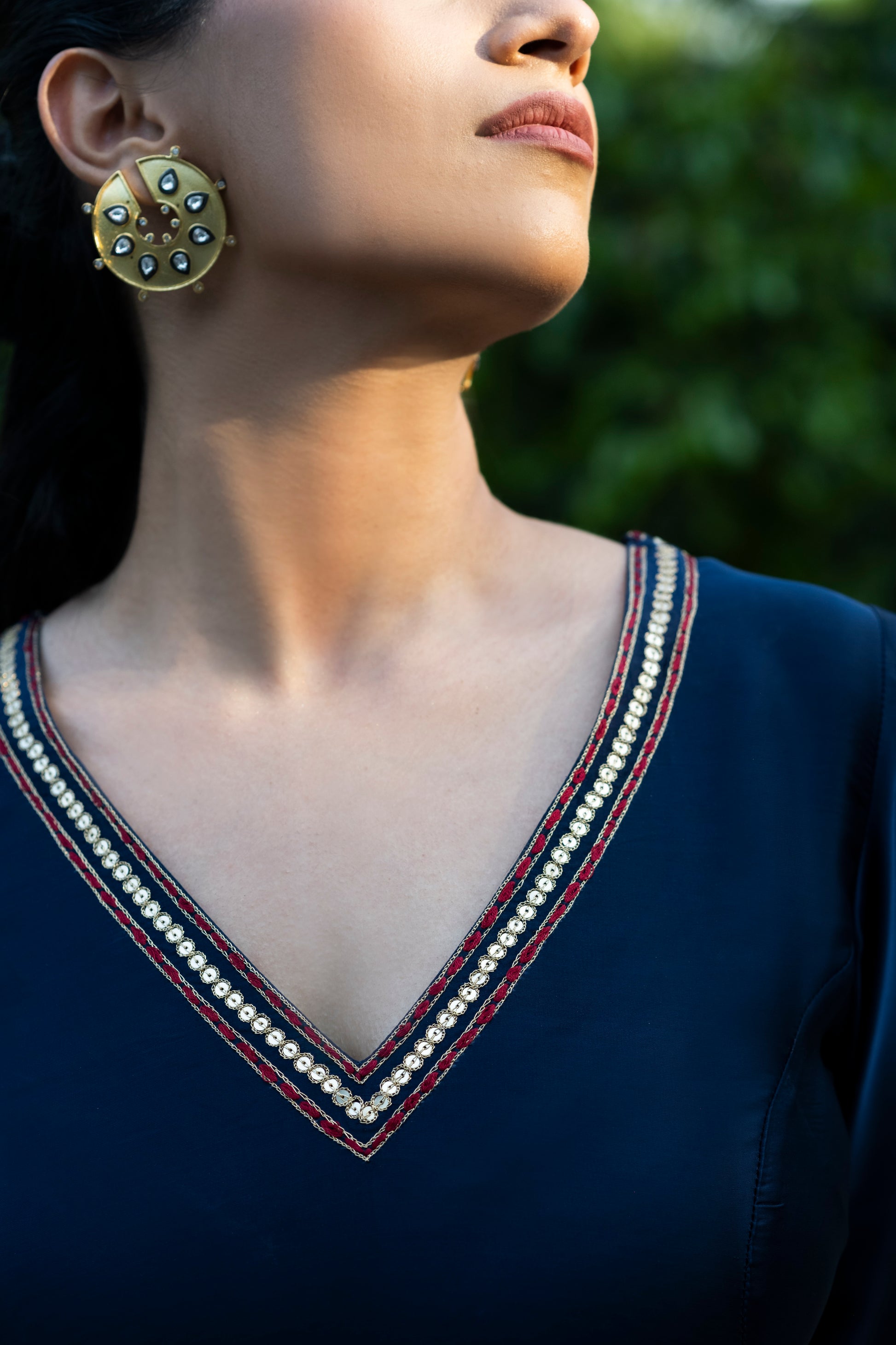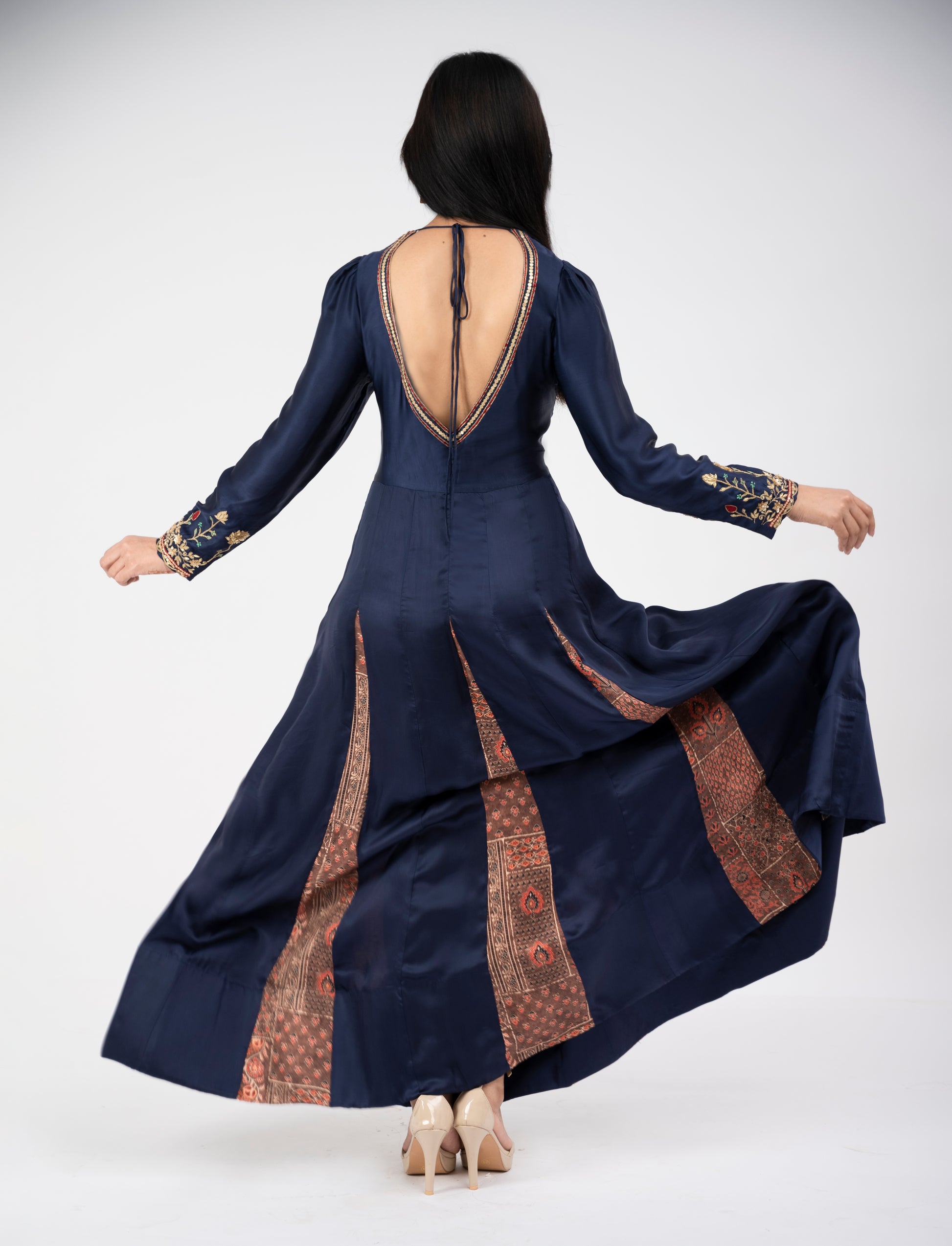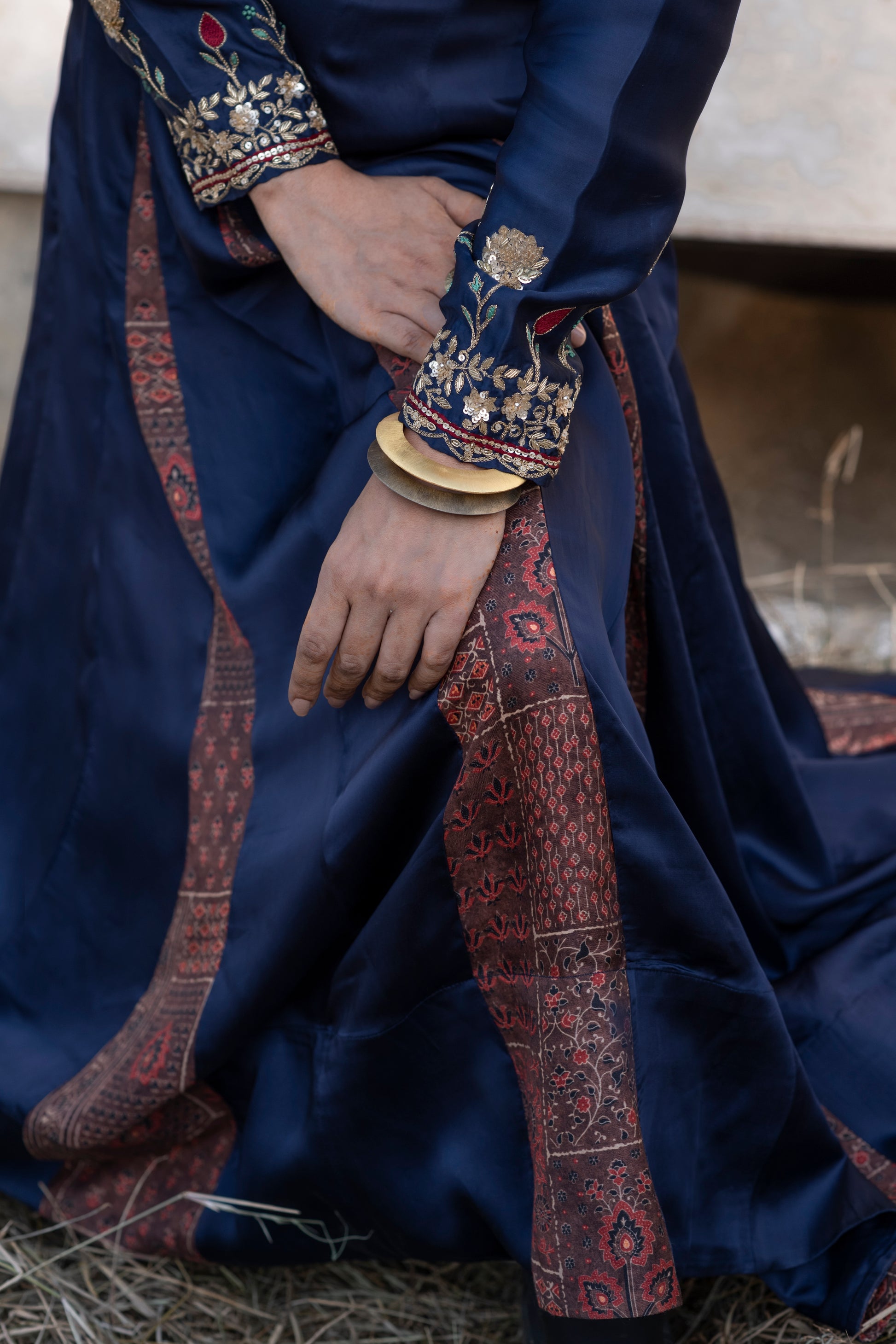 Discover the elegance of the Neerja Gown, meticulously crafted from luxurious cupro and gaji silk. This flowing gown combines timeless style with a contemporary edge, designed to make you feel graceful and empowered.