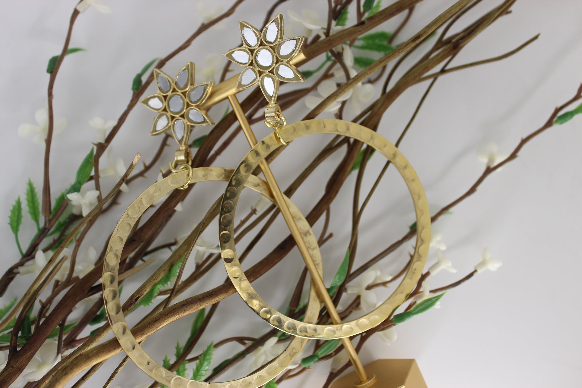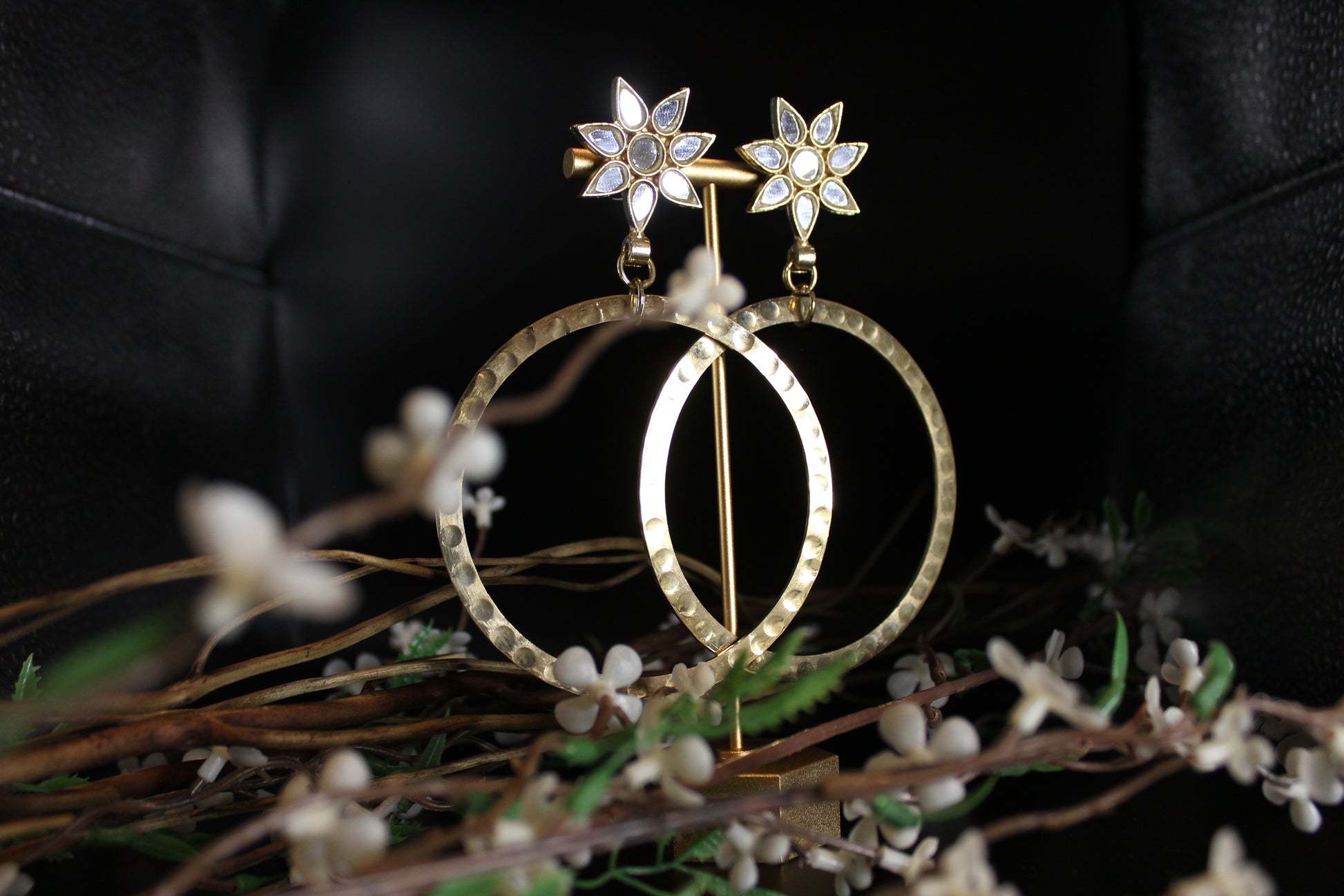 The combination of mirror work and hammered metal come together in the Sitarra earrings.